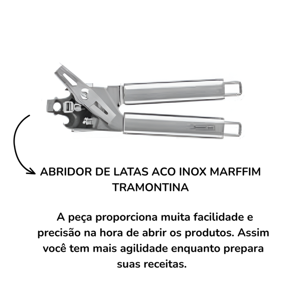 Abra latas sem esforço com o Abridor de Latas Tramontina Marffim em Aço Inox. A peça proporciona muita facilidade e precisão na hora de abrir os produtos. Assim você tem mais agilidade enquanto prepara suas receitas. Além disso, a peça é fabricada totalmente em aço inox, o que traz mais resistência e durabilidade ao item. E o melhor de tudo é que você pode levar o item ao lava-louças sem se preocupar em comprometer a qualidade do produto.