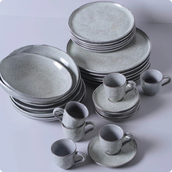 O Aparelho de Jantar Porto Brasil Bio Pistache 30 Peças Stoneware é ideal para quem busca elegância, resistência e exclusividade na mesa posta. Com design sofisticado em tom cinza e acabamento artesanal, esse conjunto é perfeito para compor momentos especiais com familiares e convidados, trazendo requinte e durabilidade para os encontros.