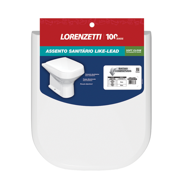 O Assento Sanitário Soft Close Loren Like-Lead Branco Lorenzetti é fabricado em polipropileno de alta durabilidade. Possui formato anatômico para maior conforto e design clean que proporciona encaixe perfeito com a bacia.