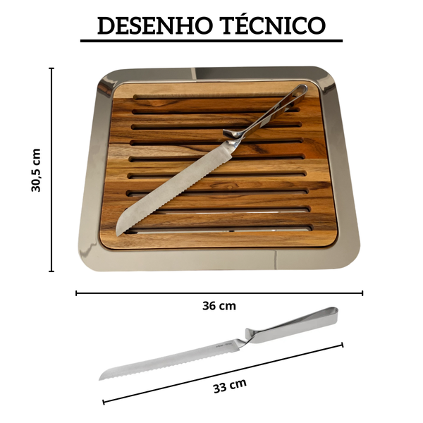 Bandeja com Migalheira e Faca de Pão Riva Cassino Aço Inox Polido ▾