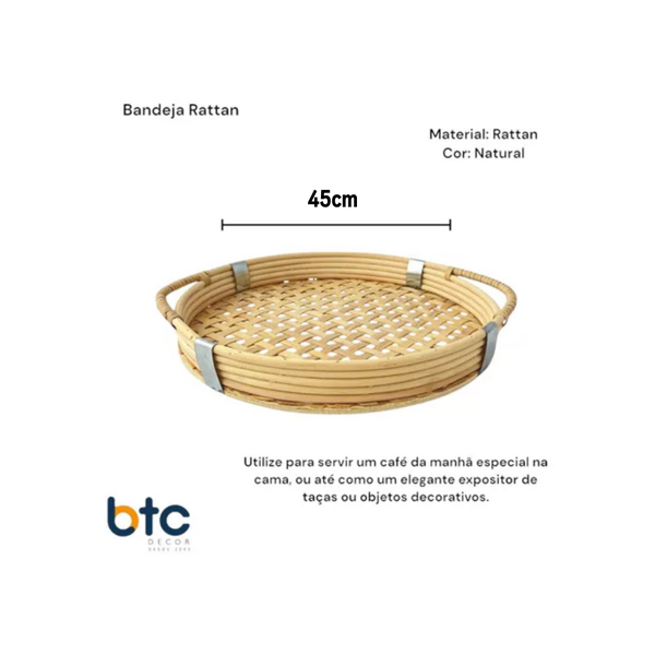 Com um design natural e atemporal, a Bandeja de Rattan Bege é a peça perfeita para unir funcionalidade e elegância. Produzida em rattan, material resistente e cheio de charme rústico, ela se adapta a diferentes estilos de decoração, do clássico ao moderno. Versátil, pode ser usada para servir cafés, bebidas e petiscos, ou como um elegante expositor de taças, vasos, toalhinhas e objetos decorativos em diversos ambientes da casa, como sala, quarto, banheiro, varanda ou área gourmet.