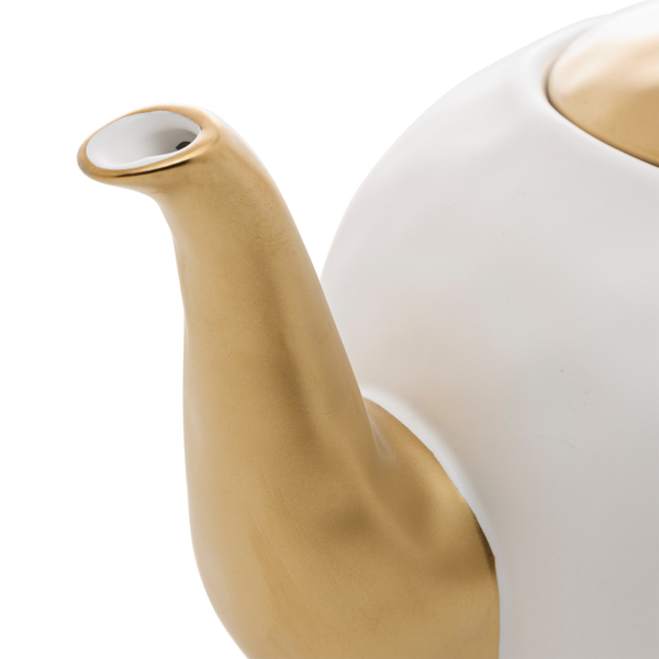 Os detalhes dourados conferem um toque de luxo, tornando o bule ideal para ocasiões especiais.