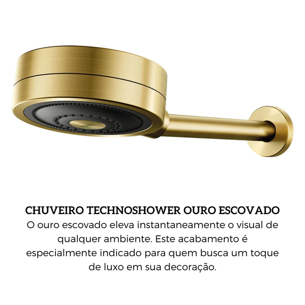 Chuveiro Ducha de Parede Docol Technoshower Ouro Escovado Metal ▾