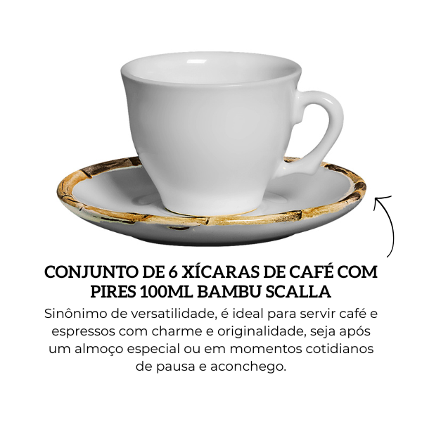 -18%Conjunto De 6 Xícaras De Chá Com Pires 200Ml Bambu Scallade R$ 245,11 porR$ 192,00 no PIX