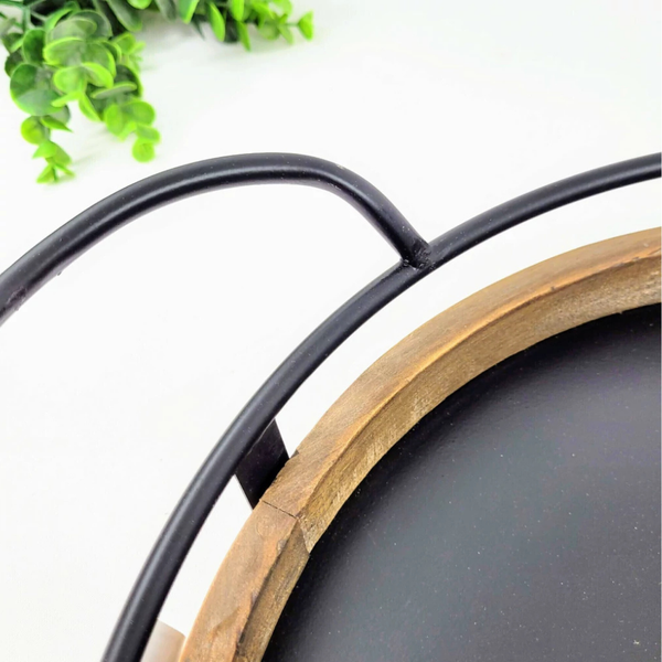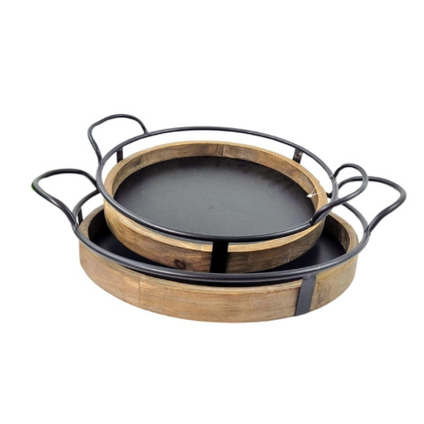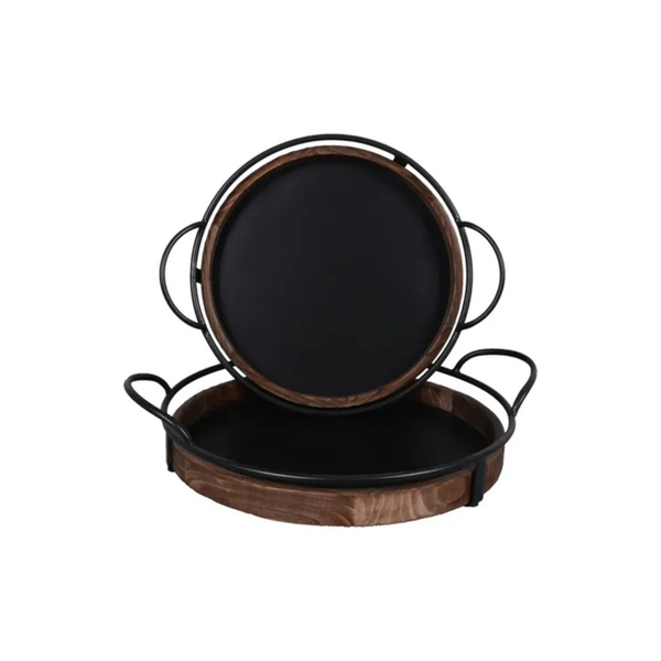 TConjunto de bandejas em madeira e metal preta - 2 pçs