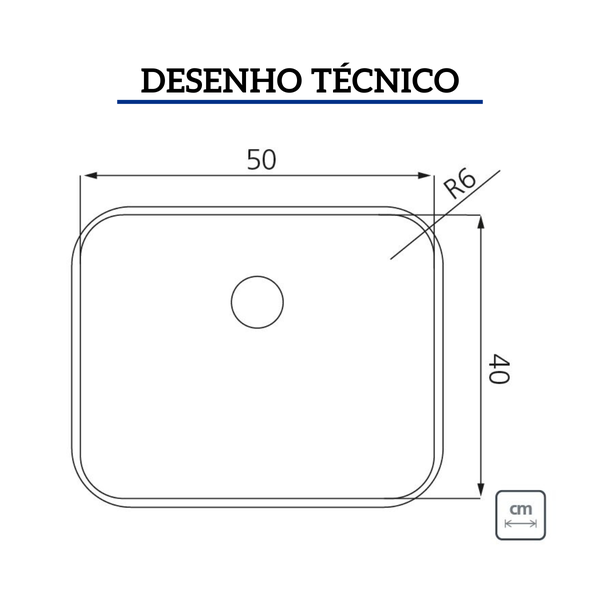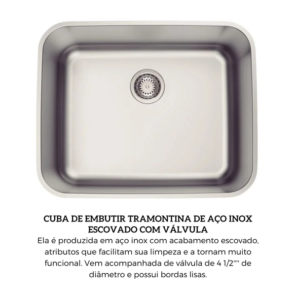 Esta cuba possui dimensões de 50x40 cm e profundidade de 200 mm, com raio de 60 mm. Produzida pela Tramontina, oferece 10 anos de garantia.