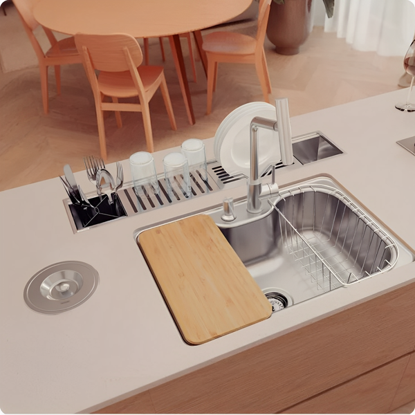 A Cuba Tramontina Morgana 60 FX Undermount em Aço Inox com Acabamento Acetinado, 69 x 49 cm, com Lixeira de Embutir 5 L, Tábua de Madeira, Dosador de Sabão, Cesto Aramado e Válvula, é a escolha ideal para quem quer acrescentar estilo, praticidade e durabilidade ao projeto de sua cozinha.