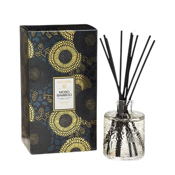 O Difusor de Ambiente 100ml Moso Bamboo – Voluspa transforma qualquer espaço com uma fragrância leve, elegante e revigorante. A combinação de bambu moso, notas verdes frescas e nuances sutis de almíscar cria uma atmosfera acolhedora e sofisticada, perfeita para salas, quartos, lavabos e escritórios. A icônica fragrância Moso Bamboo é conhecida pelo equilíbrio entre frescor e suavidade. Ideal para quem busca um aroma clean, verde e contemporâneo, que perfuma sem ser invasivo. É uma excelente escolha para ambientes modernos e minimalistas.