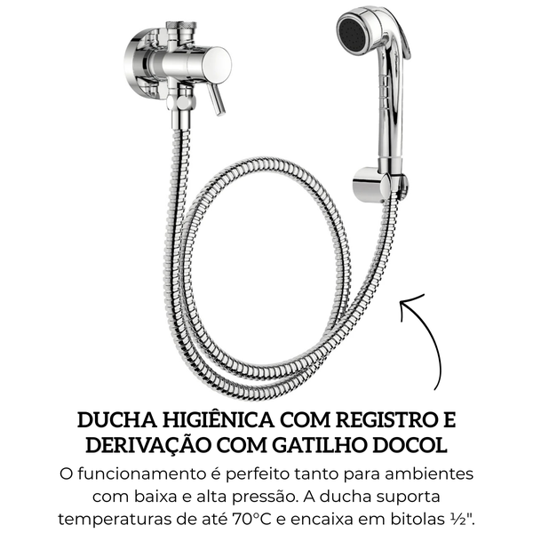 Ducha Higiênica Com Registro e Derivação Com Gatilho Cromado Lóggica Docol