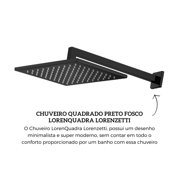 Chuveiro Quadrado Preto Fosco LorenQuadra Lorenzetti 7034 B16 ▾