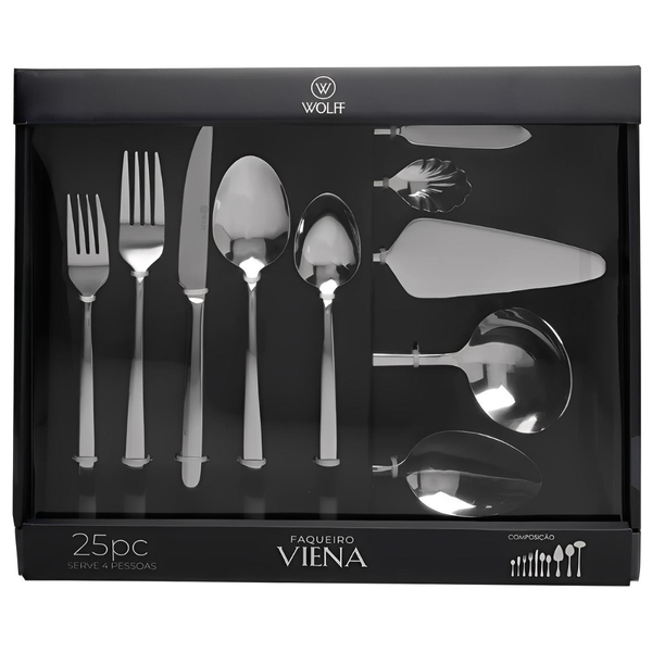Faqueiro De 25 Peças Viena Em Aço Inox