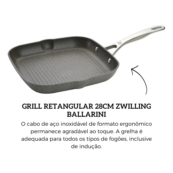 Grill Retangular Zwilling Ballarini Revestido Granitium 28cm Antiaderente ▾