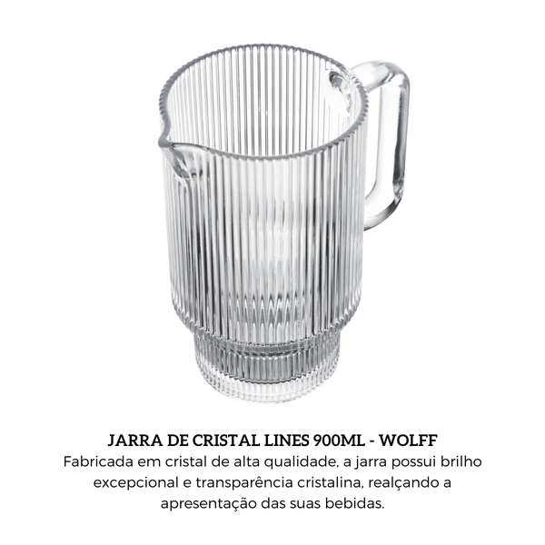 Jarra de Cristal Wolff Lines 900ml Transparente com Bico e Alça ▾