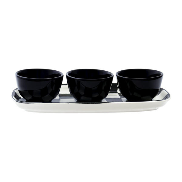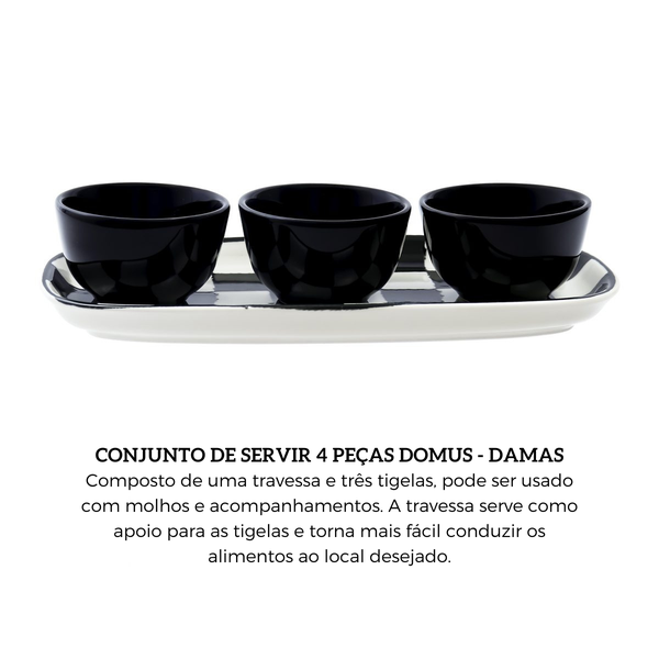 Jogo de Servir Oxford Domus Damas 4 Peças Cerâmica Preto e Branco ▾
