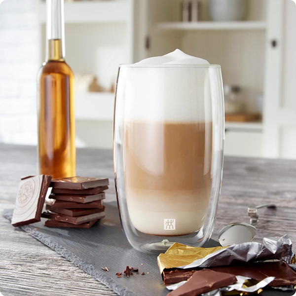 O Jogo de 2 Copos Zwilling Sorrento Parede Dupla 350ml é perfeito para quem procura elegância e funcionalidade nos acessórios para cozinha. Projetados com vidro de borossilicato de alta qualidade, esses copos unem leveza, resistência e um design moderno, ideais para servir long drinks, sucos, água, café, latte ou cappuccino, mantendo a temperatura das bebidas por muito mais tempo.