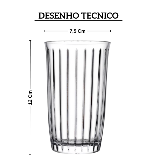 O formato alto e transparente realça os drinks e compõe uma mesa posta sofisticada.