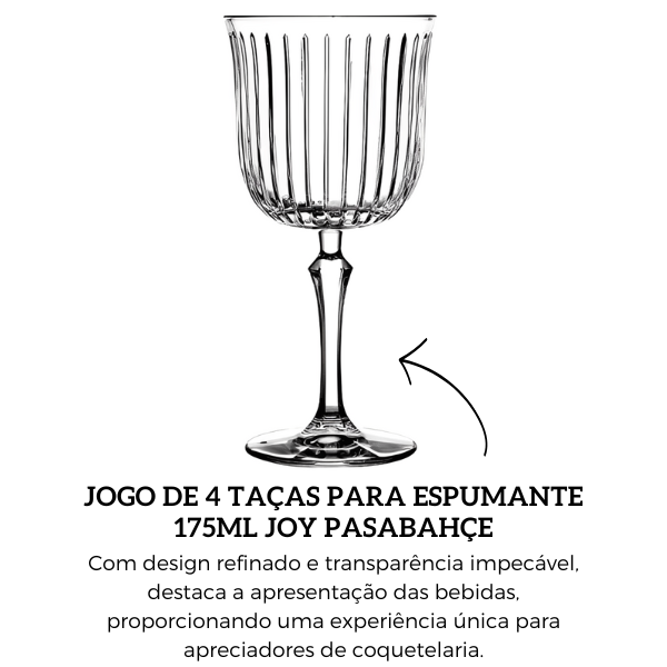 Jogo de 4 Taças Para Espumante Pasabahçe Joy 175ml Vidro Transparente ▾
