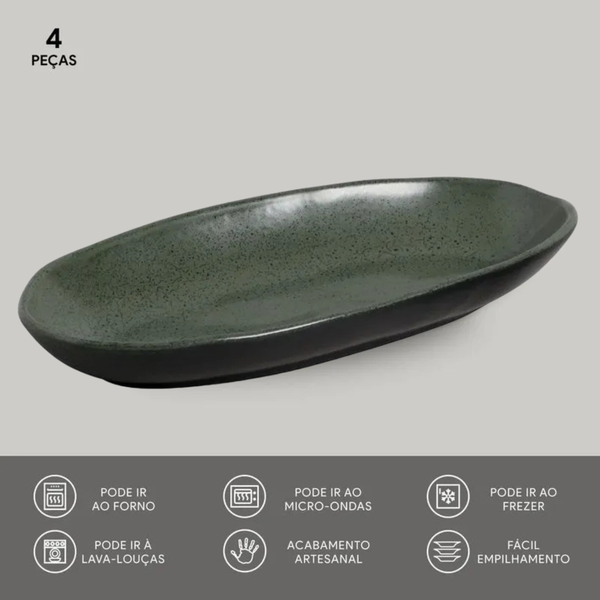 Jogo De 4 Travessas Oval Funda Orgânico Greenery Porto Brasil ▾