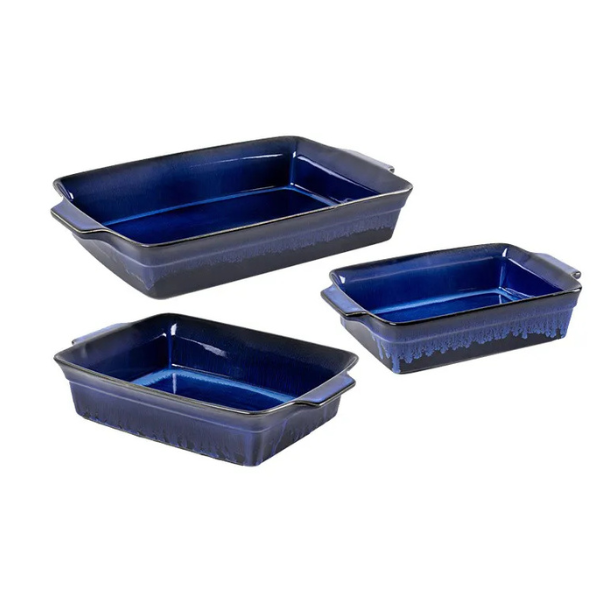 Conjunto De 3 Travessas Em Cerâmica Azul Retangular