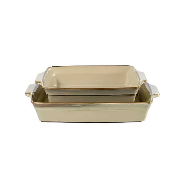Conjunto de travessas retangulares de cerâmica bege 3 pçs BTC