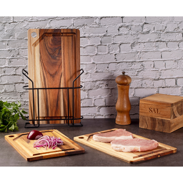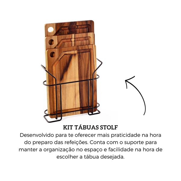 O Kit de 3 Tábuas de Teca com Suporte de Metal Black Stolf é a escolha perfeita para quem busca praticidade e organização na cozinha. Com três tábuas de tamanhos variados e um suporte elegante, este conjunto oferece funcionalidade e estilo.