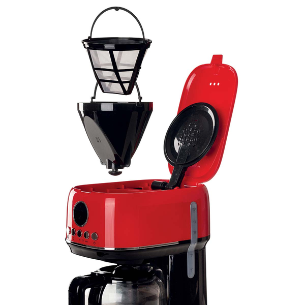 A Cafeteira Ariete conta com visor digital, display LCD intuitivo e função aroma, tornando o preparo do café simples e personalizado. Seu design robusto, aliado à jarra de vidro temperado de alta capacidade, é perfeito para famílias ou ocasiões especiais.