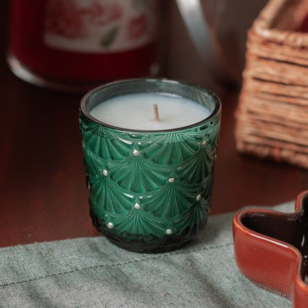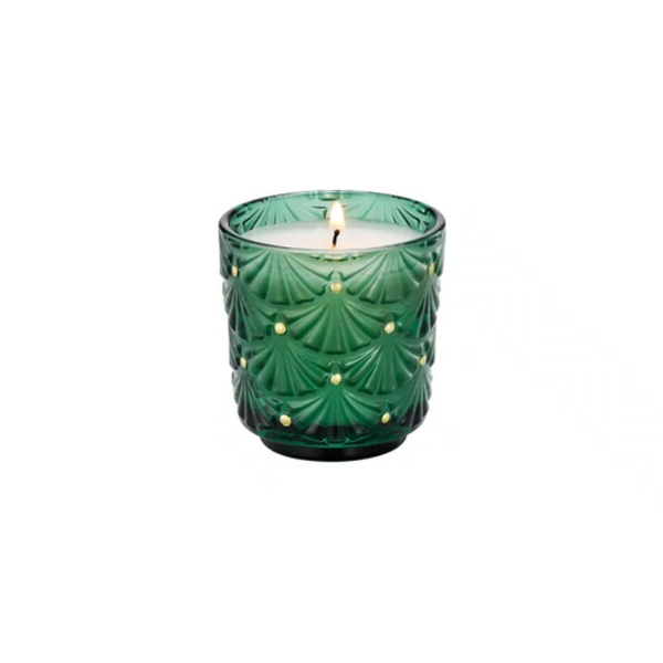 A Mini Vela Voluspa Copo de Vidro Votive Noble Fir Garland 25h traz a fragrância festiva e sofisticada do pinho nobre, enriquecido por notas de cardamomo e canela. Produzida com blend de ceras vegetais de alta qualidade (coco e damasco), oferece queima limpa e prolongada de até 25 horas. O copo de vidro votive agrega charme e elegância, perfeito para presentear, decorar ou compor mesas festivas no período natalino.