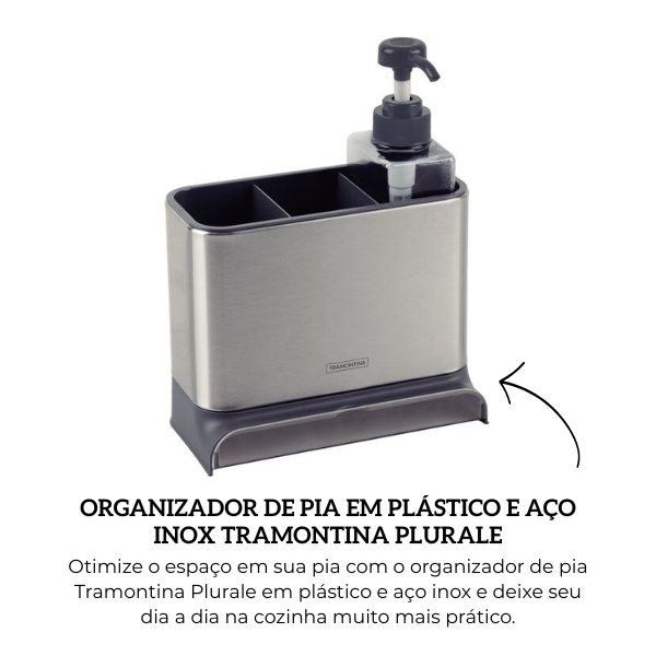 Otimize o espaço em sua pia com o organizador de pia Tramontina Plurale em plástico e aço inox e deixe seu dia a dia na cozinha muito mais prático. Com um design inteligente e funcional, ele é perfeito para manter sua pia arrumada e seus itens de limpeza sempre ao alcance.