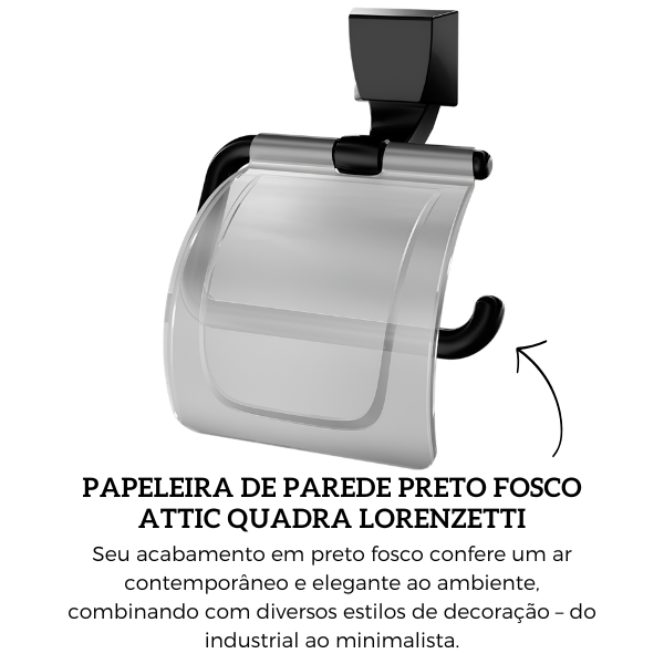 A Papeleira de Parede Lorenzetti Attic Quadra Preto Fosco é a escolha ideal para quem busca funcionalidade aliada a um design moderno no banheiro ou lavabo. Seu acabamento em preto fosco destaca-se pela elegância e versatilidade, complementando diferentes estilos de decoração e tornando o ambiente mais sofisticado.