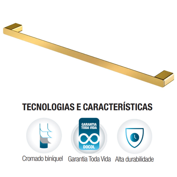 -16%Porta-Toalhas Bastão Duplo Para Banheiro Flat Ouro Polido Docol -de R$ 1.999,99 porR$ 1.598,10 no PIX