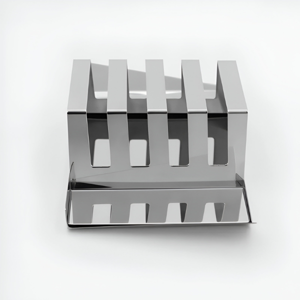 O Porta-Torrada Riva Ritratto em aço inoxidável cromado é perfeito para quem busca sofisticação e praticidade à mesa do café da manhã ou brunch. Com design moderno e acabamento polido, este acessório para cozinha agrega elegância à rotina, seja em ambientes residenciais, hotéis ou cafés.