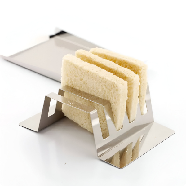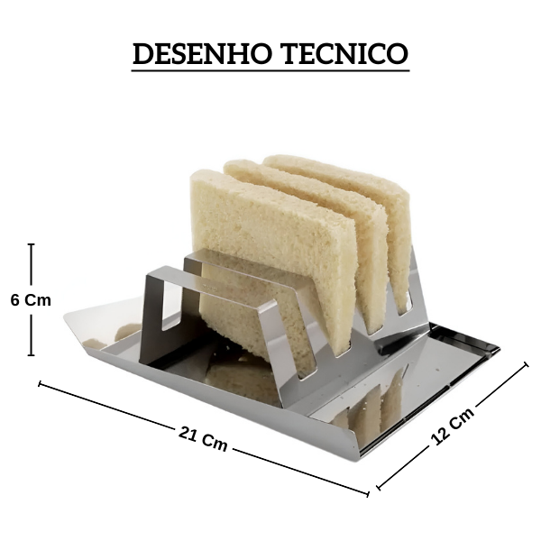 O suporte permite organizar e servir fatias de pão de forma de maneira elegante e prática.