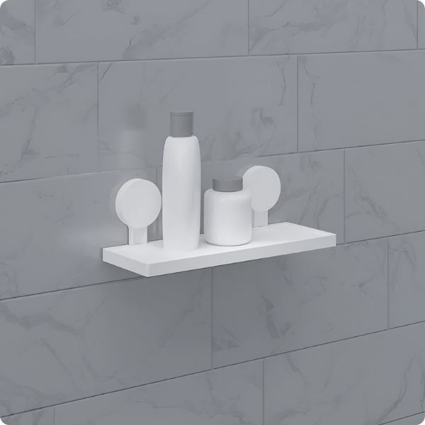 A prateleira de parede Astra é produzida em plástico ABS de alta qualidade, oferecendo resistência à umidade e longa vida útil. A fixação por adesivo proporciona instalação rápida e eficiente, tornando o produto ideal para quem busca praticidade, funcionalidade e organização para o espaço.