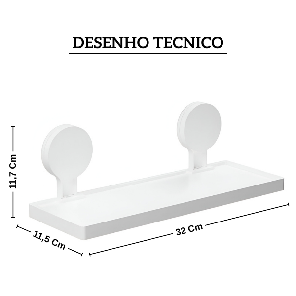 Fabricada em plástico ABS, a prateleira é robusta, suporta peso e não deforma com o uso.
