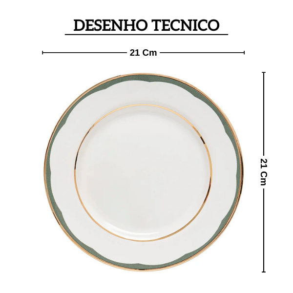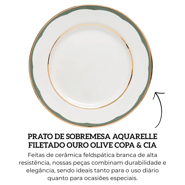 Prato De Sobremesa Aquarelle Em Cerâmica Filetado Ouro Olive