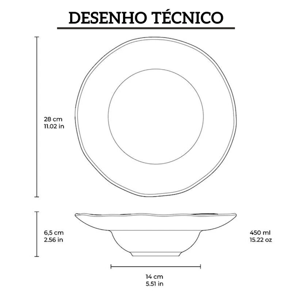 Com dimensões generosas, o prato comporta até 250ml e apresenta ótima durabilidade devido ao uso de stoneware de alta qualidade. As especificações evidenciam seu compromisso com desempenho e design para compor qualquer conjunto de acessórios para cozinha.