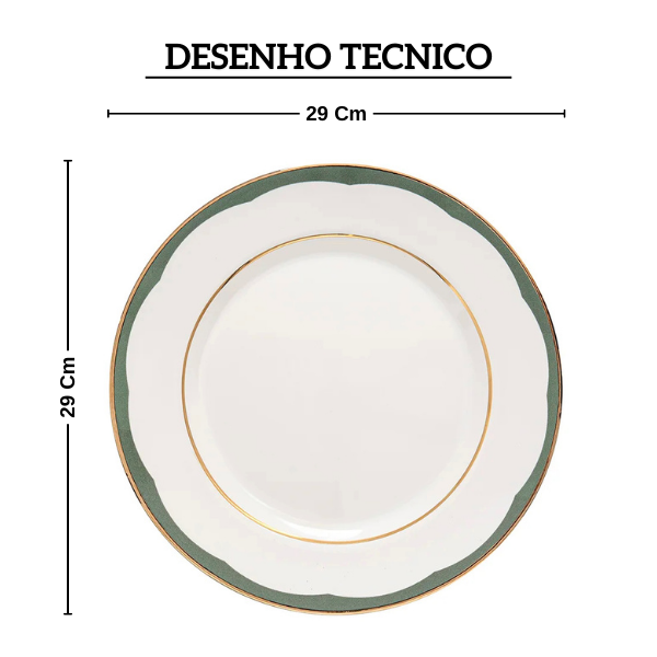 Prato Raso Aquarelle Em Cerâmica Filetado Ouro Olive