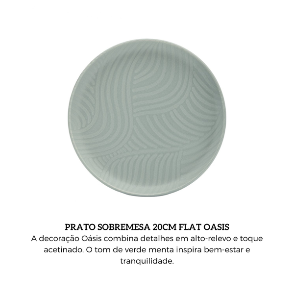 O Prato de Sobremesa Flat Oasis une funcionalidade, beleza e resistência, ideal para uma mesa elegante a qualquer momento. Sua versatilidade permite uso diário e armazenamento fácil em espaços compactos.
