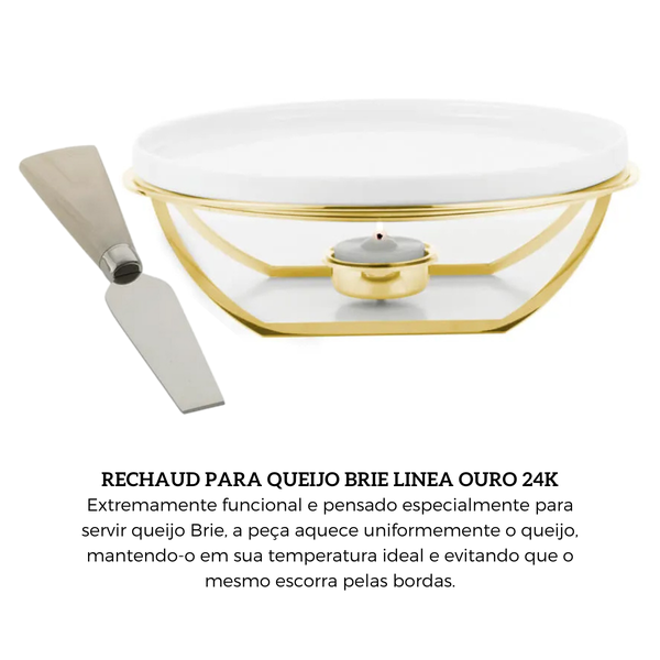 O disco difusor de alumínio mantém o queijo brie aquecido por igual, evitando desperdício e facilitando o serviço.