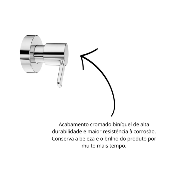 Este acabamento para registro da Docol oferece máxima resistência, aliado à facilidade de uso, tornando seu banheiro mais funcional e bonito. A tecnologia do cromado biníquel preserva o brilho e a robustez, enquanto o acionamento por alavanca facilita o uso mesmo com as mãos molhadas.