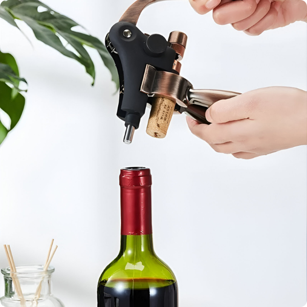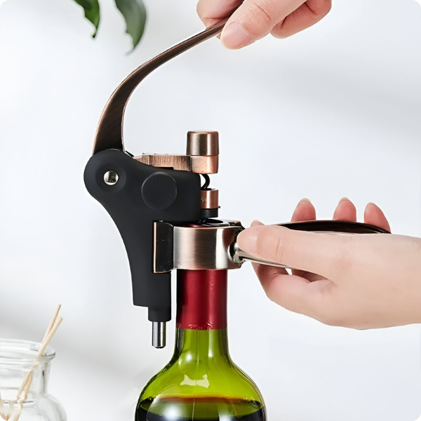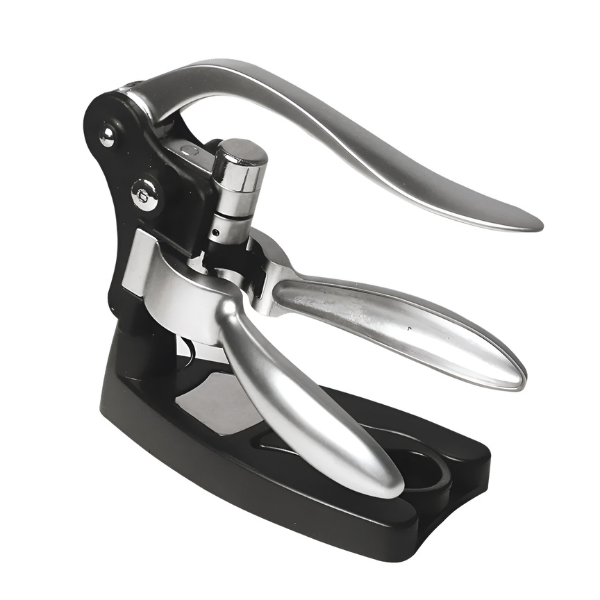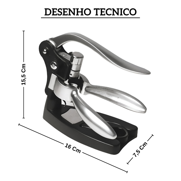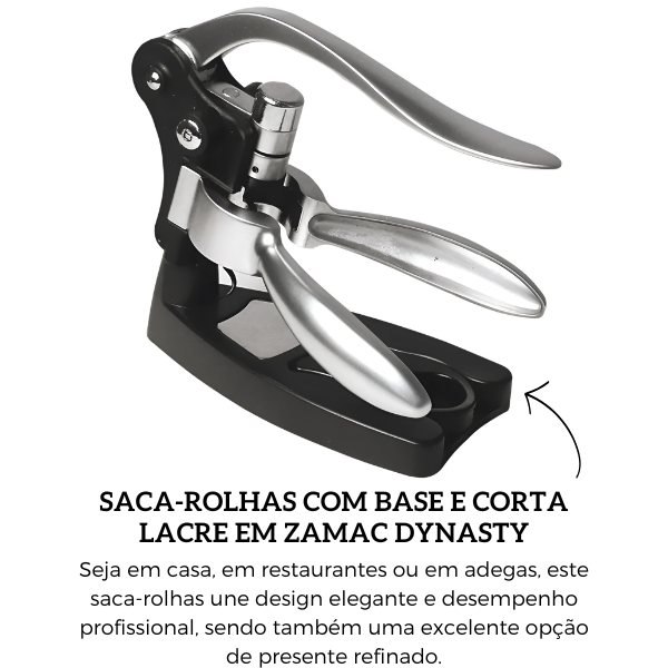 Produzido em zamac de alta resistência, o acessório garante durabilidade, estabilidade e acabamento premium. Sua base robusta oferece apoio firme durante o uso, evitando acidentes e facilitando a abertura de qualquer garrafa com total segurança. Seja em casa, em restaurantes ou em adegas, este saca-rolhas une design elegante e desempenho profissional, sendo também uma excelente opção de presente refinado.