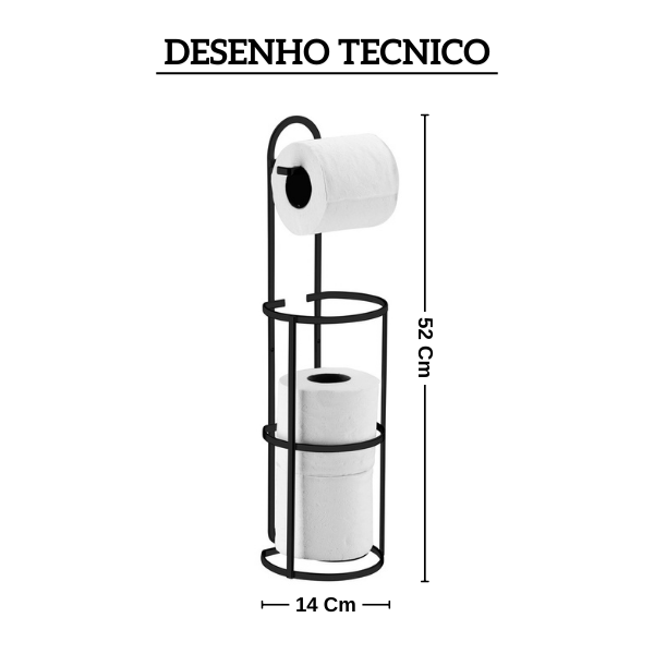 O Suporte para Papel Higiênico se adequa a sua necessidade: pode ser fixado na parede ou simplesmente deixado no chão. Tem a praticidade de acomodar 1 rolo em uso e 2 rolos de papel reserva. Acabamento liso e fosco. A pintura a pó aplicada na peça garante uma excelente cobertura protetiva contra corrosão e alta resistência ao impacto.