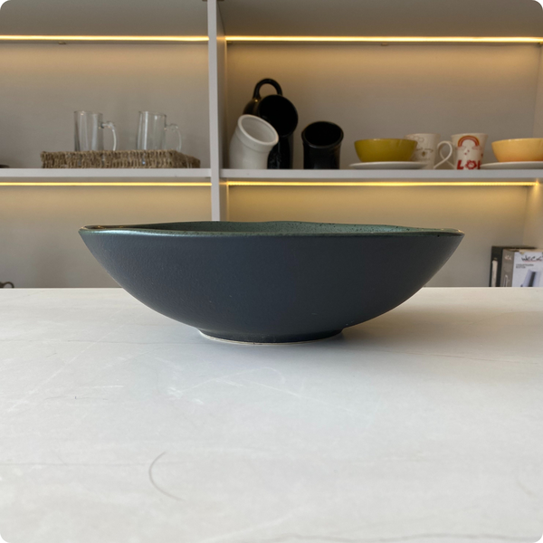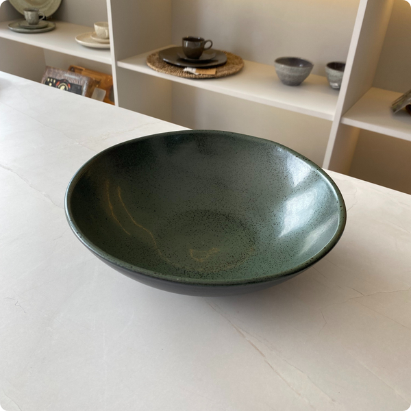 Design contemporâneo em verde musgo, perfeito para composições elegantes de acessórios para cozinha, tigelas e petisqueiras.