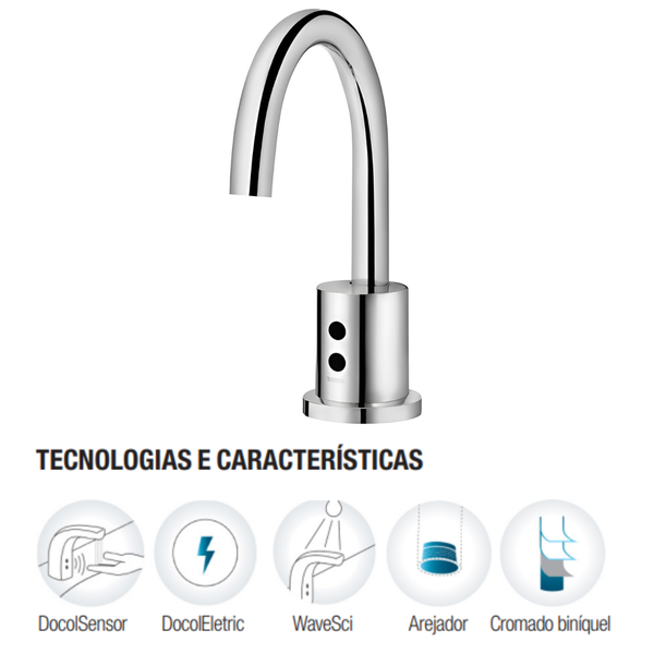 Torneira De Mesa Para Banheiro Com Sensor DocolEletric Cromado ▾