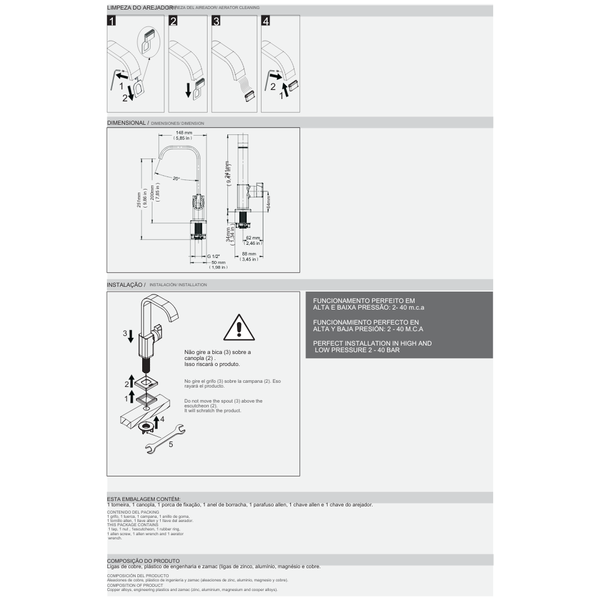 O principal benefício dessa linha é a sua resistência e funcionalidade durante o uso dos produtos. Com a torneira para banheiro você tem o conforto da água arejada para lavar às mãos a qualquer momento numa única alavanca. Esse produto possui um arejador embutido, que garante até 90% de economia de água ao misturá-la com o ar durante o uso.