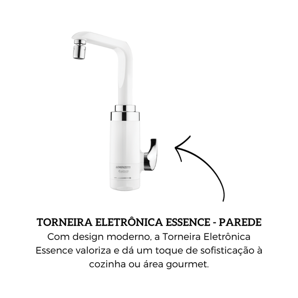 Com comando eletrônico, é possível escolher a temperatura ideal para cada necessidade, tornando o dia a dia mais prático. O design moderno da Torneira Elétrica Essence valoriza a cozinha e oferece facilidade de instalação em parede, combinando eficiência e beleza.