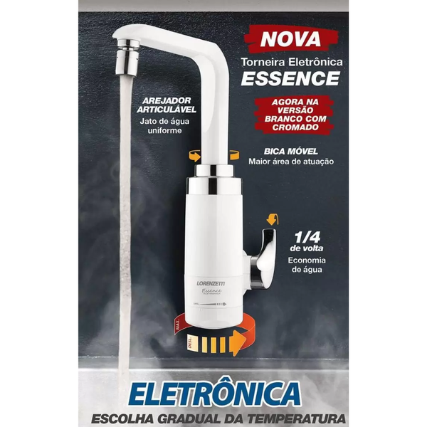 A Torneira Elétrica Lorenzetti Essence Parede 220V 5500W Branco Cromado alia praticidade e sofisticação, sendo ideal para cozinhas modernas e áreas gourmet. Seu design elegante e funcionalidade avançada oferecem aquecimento instantâneo da água, proporcionando mais conforto e eficiência nas tarefas diárias.