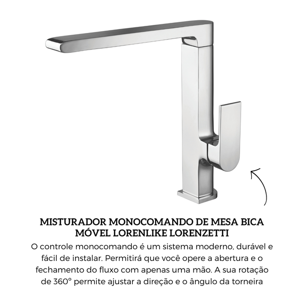 Misturador Monocomando de Mesa Bica Móvel Cromado LorenLike Lorenzetti 2257 C78 ▾
