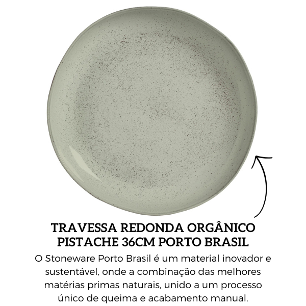A Travessa Redonda Grande Stoneware Pistache 36Cm Porto Brasil é ideal para servir alimentos com sofisticação, unindo design contemporâneo e funcionalidade. Sua cor verde menta e acabamento artesanal proporcionam um toque exclusivo à mesa posta, tornando cada momento ainda mais especial.