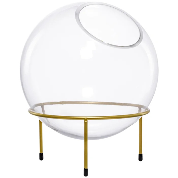 Vaso de vidro redondo com base dourada de metal